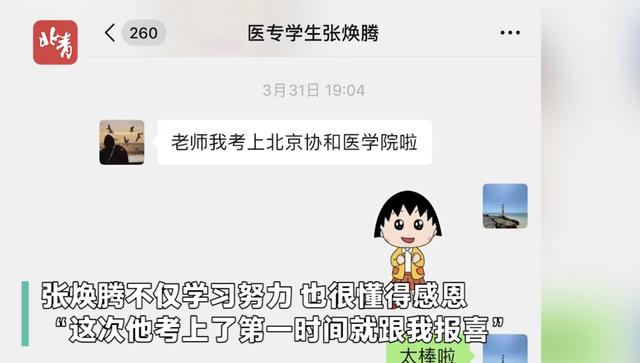 接下来,张焕腾也没有放松,他把目标变成考研,一点点持续努力,终于收到北京协和医学院(清华医学部)拟录取通知。