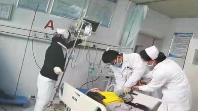 在等救护车来的同时,还在采取一些急救措施,试图唤醒自己的外甥杨昊,等到救护车来的时候,在现场就对杨昊进行紧急抢救。