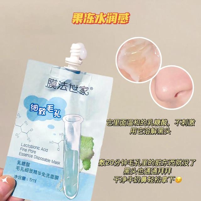 它里面含乳糖酸,是比较温和的,能溶解黑头、疏通毛孔。