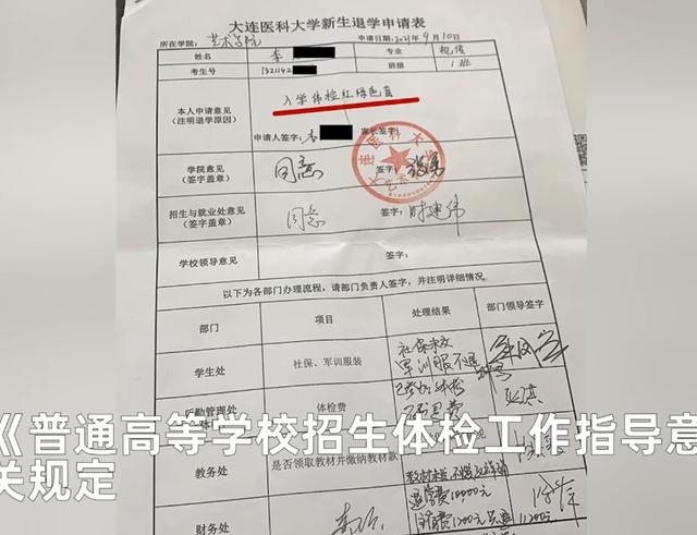 关于辽宁一新生入学5天就被“强制退学”一事,校方回应来了!校方表示,将会请专家对学生的视力做出检查,倘若学生视力为色弱,将会重新安排他上课,但如果是色盲,只能要求退学。
