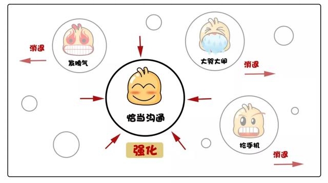 在通往正面行为的过程中,孩子可以有无数种问题行为,可能家长刚惩罚完一个问题行为,另一个问题行为又冒出来了。因此,家长与其去补这些漏洞,不如直接强化孩子的正面行为。在不良行为一次次被消退的时候,其实也相当于孩子被惩罚了。