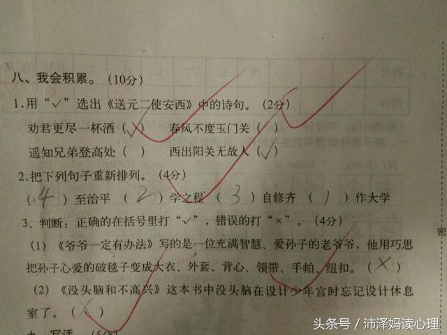 下图是我家孩子的考试卷子,里面有古诗、有三字经以及课外阅读书目的考察。