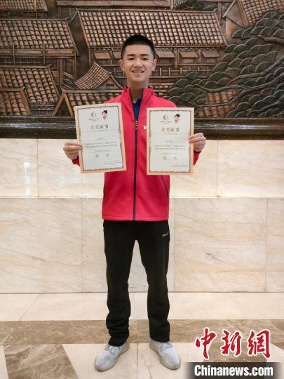 图为胡海涛展示在全国第十一届残疾人运动会暨第八届特奥会的获奖证书。受访者供图