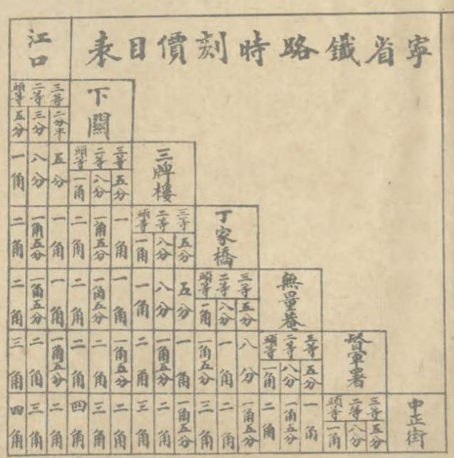1919年的宁省铁路时刻价目表。《广益杂志》,1919年第2期。