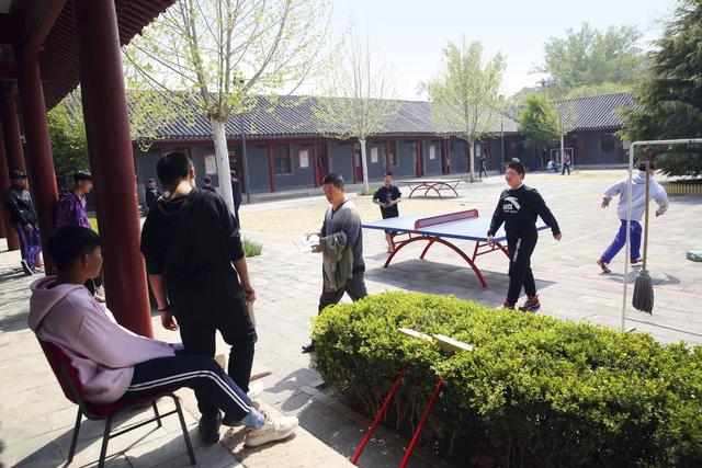 学校跟吴东最开始在照片上看到的是一致的,几个标准四合小院组成,中式廊檐建筑,灰瓦白墙,花木扶疏,教室、宿舍都在小院里,看起来清雅宜人。春天开满红白花朵的玉兰树下甚至零星摆着几张围棋桌,孩子们会像公园里的老人一样,下课时坐在树下杀一盘。陌生人在校园里找不到吴东们入学之前的顽劣身影,相反,穿着校服的学生们脸庞稚嫩,和普通学校的学生看起来没什么区别,一样上课认真听讲,下课在校园里叽叽喳喳地打闹,见到所有成年人都会低头喊“老师好”,然后羞涩地跑开。
