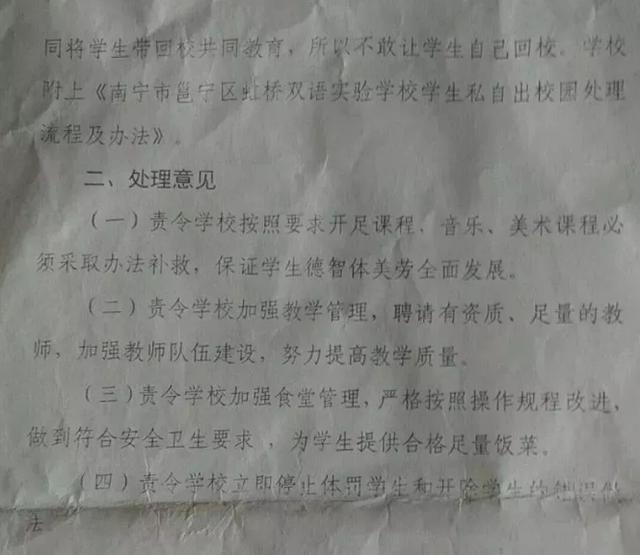 近日,虹桥学校存在体罚学生等问题被家长曝光后,邕宁区教育部门派出调查组对反映问题进行核实。
