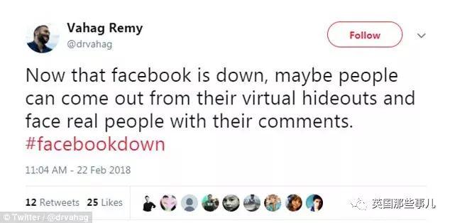“Facebook宕机了,现在大家被逼着从键盘后面出来面对真人和他们的言论了……”
