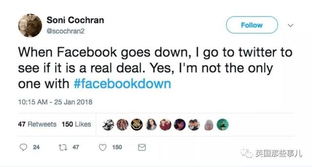 “当FB宕机的时候,我来到Twitter看发生了啥。对,我不是一个人……”