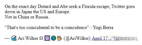 有睿智的外国网友指出,怎么推特每次出问题都是在美国欧洲和日本,中国和俄罗斯都没事?这一定有阴谋!