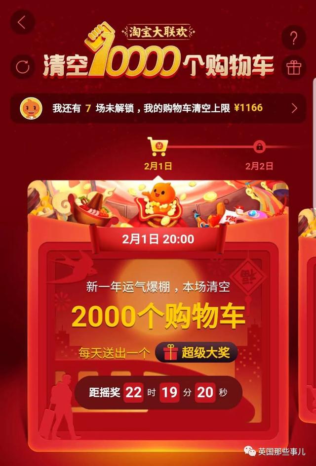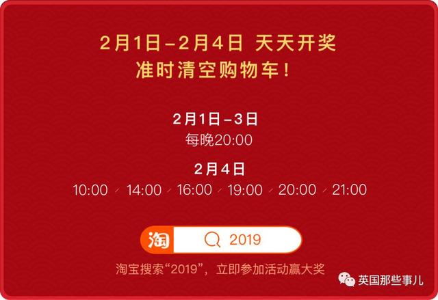 2月1日到2月4日,每天都有清空购物车开奖,名额共1万个,购物车里的商品全部由淘宝买单!这比锦鲤的中奖范围可是大多了诶!