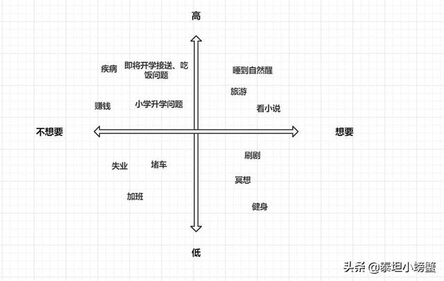 我们可以根据根据自身的压力,绘制属于自己的压力曲线,在想要和不想要之间,获得压力的平衡。根据这个方法,我绘制了近期自己的压力曲线,明确了近期及长期的烦恼和缓解方式,也确认了事件解决的必要性和迫切性。