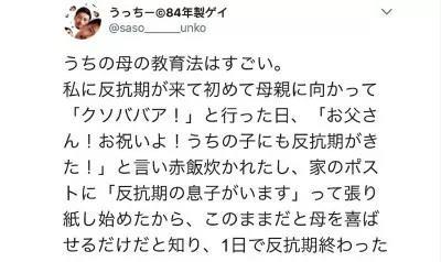 有个日本孩子,以沮丧的心情,在网上公布了父母是如何摆平他的叛逆期的。